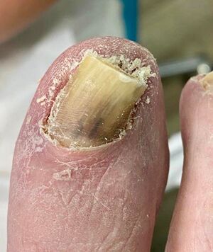 Diagnose: Die Diagnose einer Onychomykose erfolgt oft durch eine klinische Untersuchung und, falls notwendig, durch die Entnahme von Nagelproben zur mikroskopischen oder kulturellen Untersuchung, um den genauen Erreger zu identifizieren.